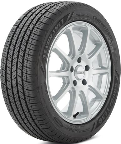 Goodyear Assurance ComfortDrive is a grand touring tire oriented to drivers of sedans, coupes, CUVs, and SUVs who want a luxury look and premium noise comfort. This model has a year-round rubber compound that utilizes soybean oil for increased traction without sacrificing fuel efficiency and mileage. Goodyear uses the latest technologies used in the production of this model. A symmetric tread design with Evolving Traction Grooves and TreadLock Technology delivers consistent grip power and high stability on the road. The optimized tread pattern is built to reduce tread noise for a smooth and quiet ride.