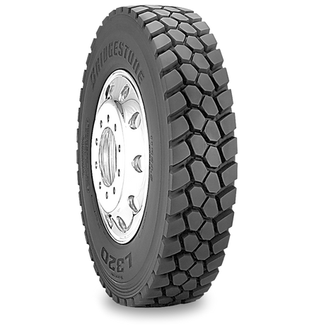 Bridgestone L320 is intended for commercial trucks running mixed-service routes, where the vehicle regularly leaves paved roads for job sites, construction access, or industrial yards. It is positioned for drive-axle service, where traction and controllability under load are key considerations.