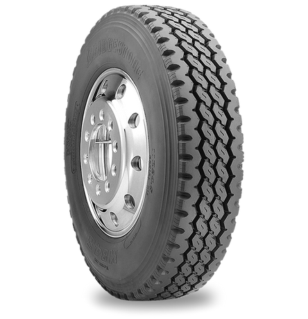 The M843 comes with a cut-resistant tread compound molded into an aggressive rib-lug tread pattern that presents a balanced combination of rib/rug pattern that provides confident performance in any wheel position. Optimized footprint offers better pressure distribution promoting uniform wear. The Bridgestone engineers use a split-belt construction to promote additional flexibility in road maneuvering, for enhanced casing durability and retreadability.