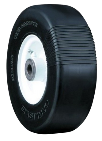 The Reliance Flat Proof Smooth shines on front casters of zero-turn and walk-behind mowers, utility and groundskeeping carts, warehouse dollies, platform trucks, and similar light industrial machines. Use it where surface preservation and tight maneuvering are priorities, like golf courses, parks, facilities, and rental fleets. Always verify size, rim diameter and width, and load capacity before purchase. Check fender and deck clearance to ensure smooth, rub-free operation.