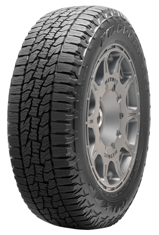 Upgrade your daily drive and weekend adventures with the Falken Wildpeak A/T Trail. This all-terrain tire blends on-road comfort with confident traction on gravel, dirt, and wet pavement. It carries the 3PMSF snow rating for winter confidence and uses a quiet tread design to keep highway noise in check. Reinforced shoulder elements add protection off road, and a long treadlife warranty brings value for the miles ahead.
