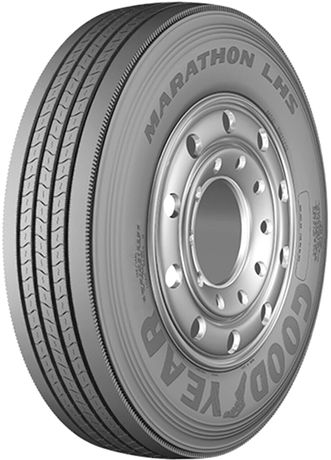 One of the most highlighted steer position tires from Goodyear's lineup which incorporates all of these is the Marathon LHS. This model is the best commercial tire in steer position services but is also optimal for trailer axles. It benefits from an advanced and durable at the same time tread compound shaped into an optimized tread pattern. Five rib design with continuous center ribs and closed shoulders puts more rubber on the road, thus delivering exceptional grip and steering precision over dry and wet surfaces. On the other side, this type of pattern provides great acoustic comfort, which is an important aspect in long distance applications.
