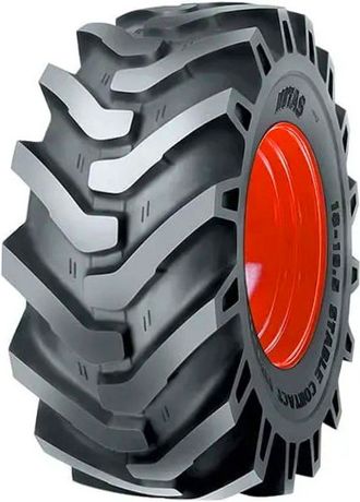 Adding to this, the large grooves of the Mitas MPT-08 throw ground elements away from the patch to minimize uneven wear and avoid clogging. Next, a special tie bar at the center of the tread keeps the blocks together to prevent deformation, leading to longer service life. It also boosts the handling precision for easier steering around the work site. The advanced rubber compound lowers the rolling resistance to decrease fuel usage. A tough internal casing upgrades the load capacity, easily handling up to 9,900 lbs. The optimal ply rating of 16 combined with the tubeless structure promotes high durability and prevents pressure loss. At last, this model is available on the US market in limited sizes with a rim diameter of 19.5".